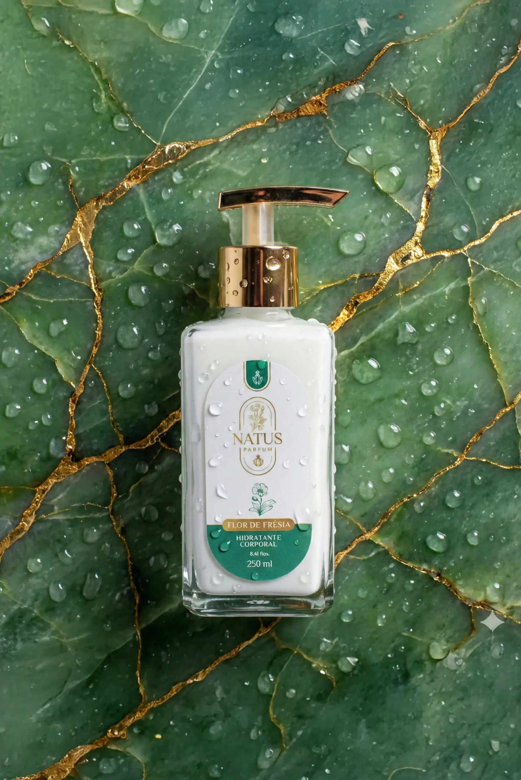 Envolva sua pele em hidratação luxuosa com o Hidratante Corporal Flor de Frésia da Natus Parfum.